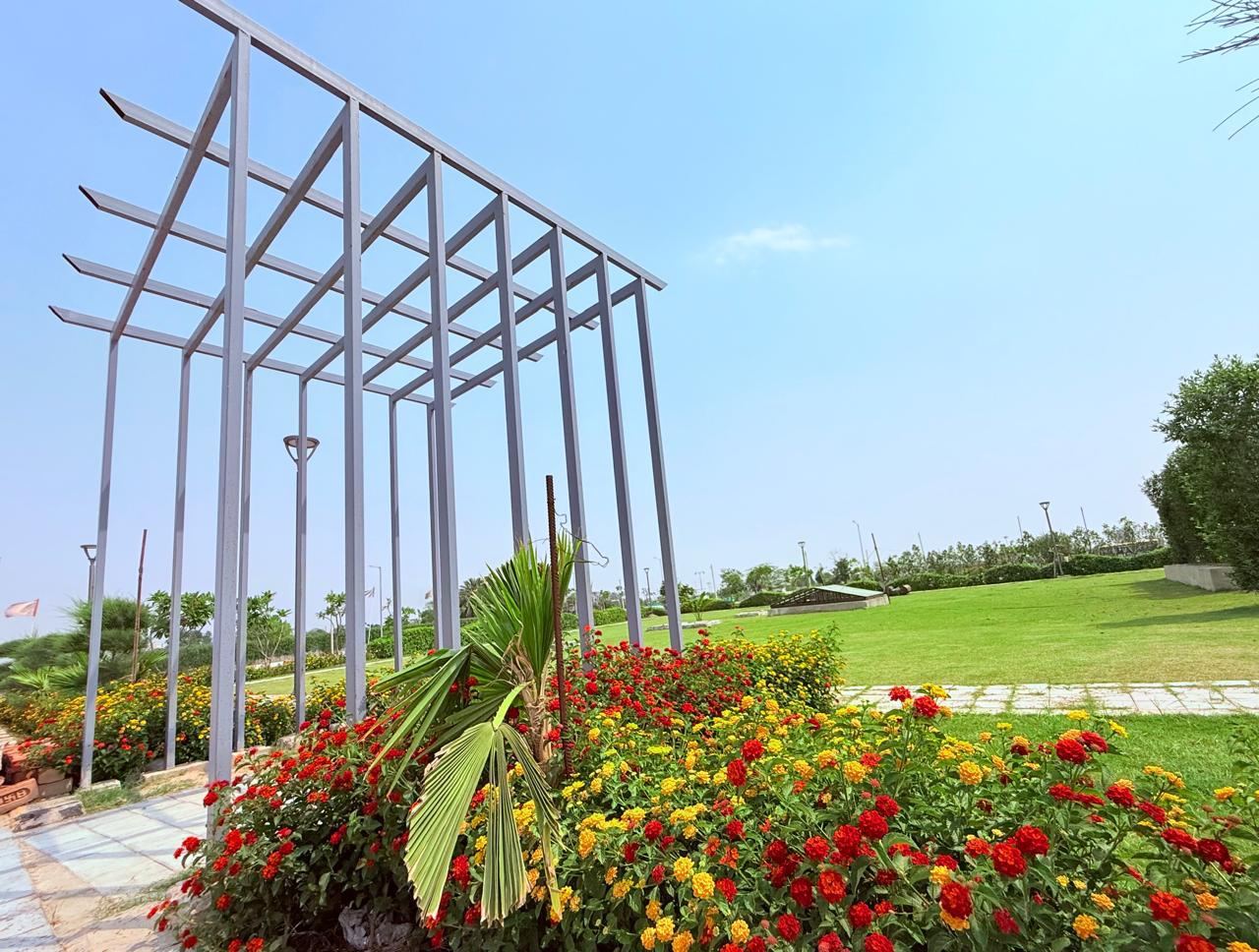 ✅ 🌹 🌳 Huge Lush green central park with open gym, kids play area, walking track, Splash pool, music Fountain with sitout area, yoga pads and amphitheatre for events.